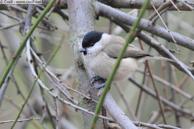Photo © T. Riabi / Corif Qui est-elle ?Avec un plumage dans les tons bruns clairs, cette petite mésange se reconnaît facilement grâce à sa calotte noire qui contraste avec ses joues blanches. Elle porte une bavette noire. Le mâle et la femelle sont identiques. Elle peut être confondue avec la Mésange boréale, qui est très semblable mais avec un chant différent. La Mésange nonnette est très curieuse et familière, elle peut se laisser facilement observer quand on la rencontre. Comme toutes les mésanges, la nonnette est très vive, nerveuse et reste difficilement au repos. Elle se nourrit à faible hauteur, dans les arbres, les buissons et les fourrés. Grâce à son bec d’omnivore, elle peut adapter son régime alimentaire à chaque saison. Tantôt insectivore, elle deviendra granivore dès l’automne pour ainsi trouver de la nourriture pendant cette rude période. C’est grâce en partie à ses cachettes de graines (par exemple entre les écorces des arbres) qu’elle arrive à se nourrir tout l’hiver. Elle peut venir se nourrir à la mangeoire.
